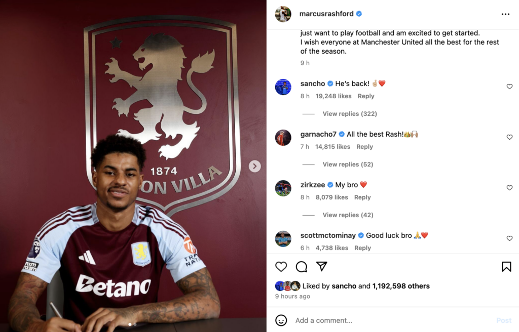 Rashford has joined Unai Emery’s side on loan for the remainder of the season, with reports suggesting that while Villa won’t pay a loan fee, they will cover 75% of the winger’s wages.