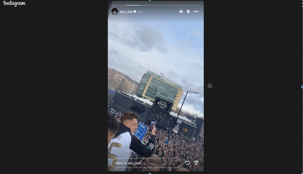 Alexander Isak has shared a live update from Newcastle United’s Carabao Cup trophy parade, as the club celebrated their first trophy in nearly 70 years.
