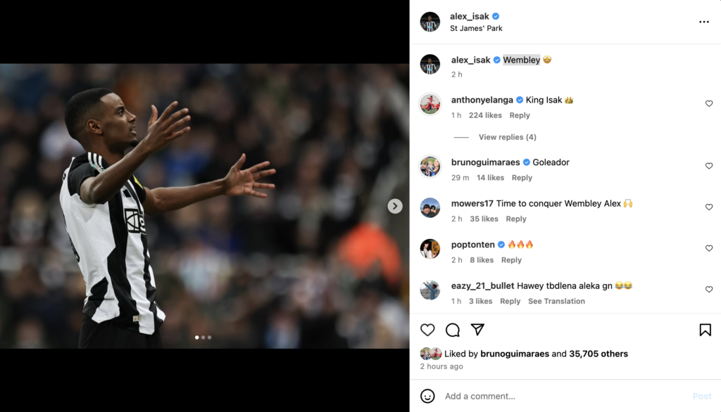Newcastle striker Alexander Isak took to social media to send a message to the fans after their 2-0 League Cup semi-final win over Arsenal on Wednesday (February 5).