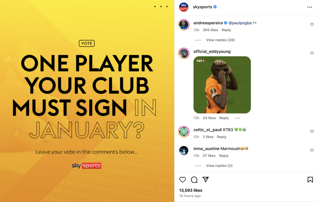 In response to a Sky Sports Instagram post asking fans, “Which player should your club sign in January?”, Pereira tagged Pogba and added the eyes emoji, sparking speculation.