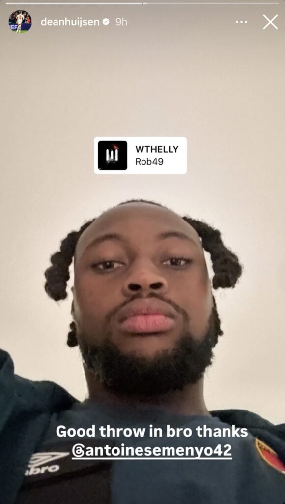 The Spaniard shared a message of appreciation for Semenyo on Instagram, posting an image of the forward off the pitch alongside the caption: “Good throw in bro thanks.”