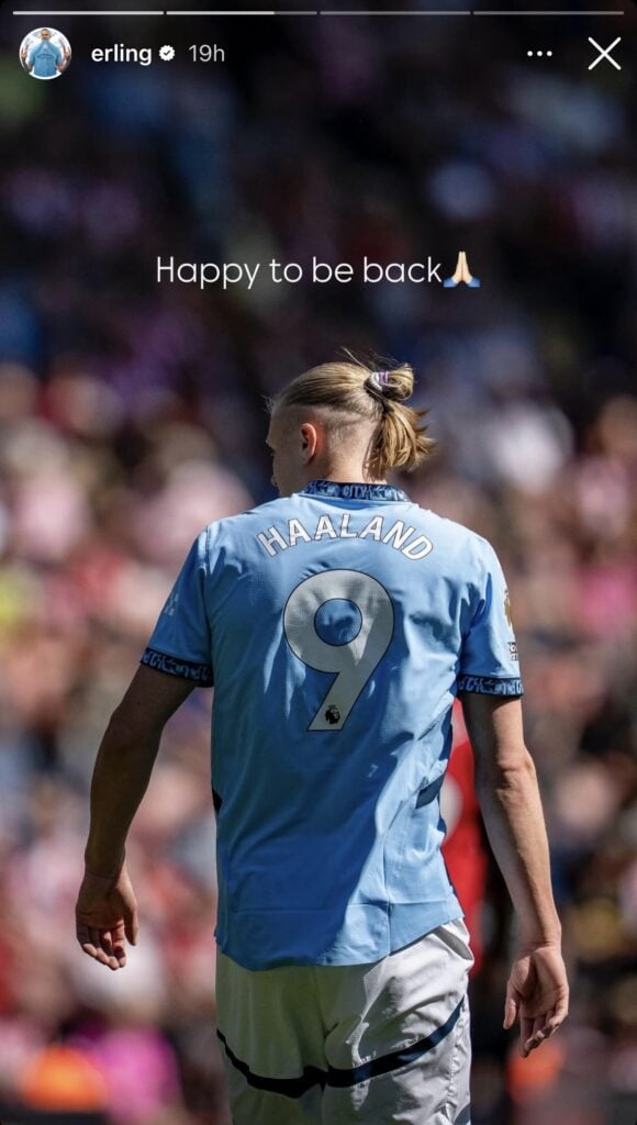 Still, the Norwegian had a message for fans after the final whistle, sharing a short and upbeat post on social media to mark his return.