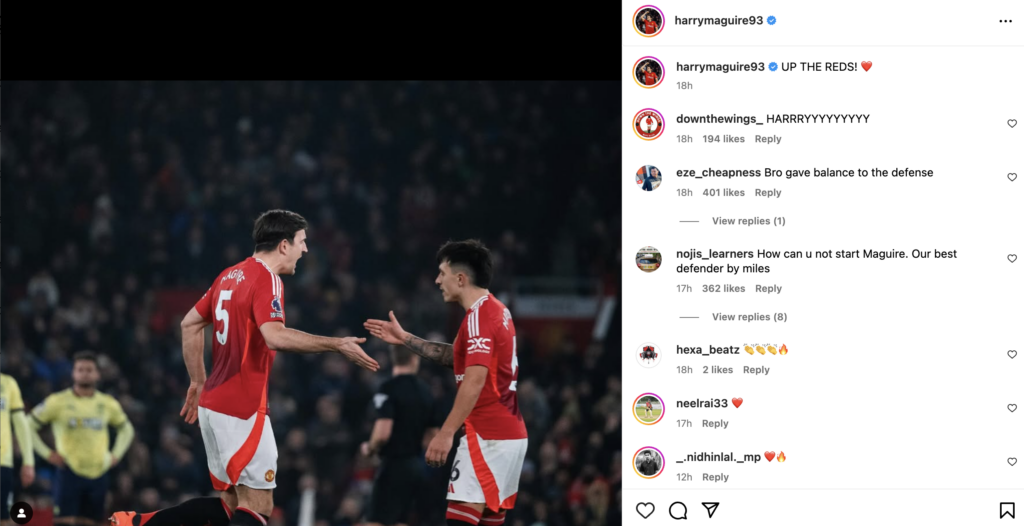 Maguire, who has been a key figure under Amorim’s guidance, took to Instagram to rally the fans, writing: “Up the Reds!” in a short but passionate post.