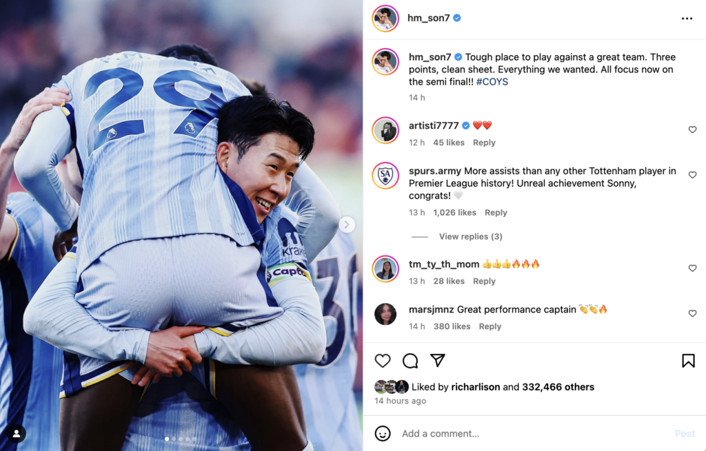 Tottenham captain Heung-Min Son took to social media to celebrate a much-needed three points at a “tough place” after their 2-0 Premier League win over Brentford on Sunday (February 2).