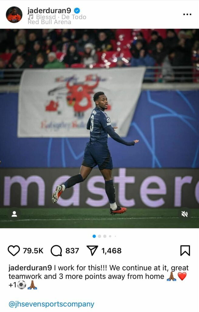 After the game, Duran took to Instagram to thank his teammates, and let the fans know they will keep working towards their goals, saying: “I work for this!!! We continue at it, great teamwork and three more points away from home.”