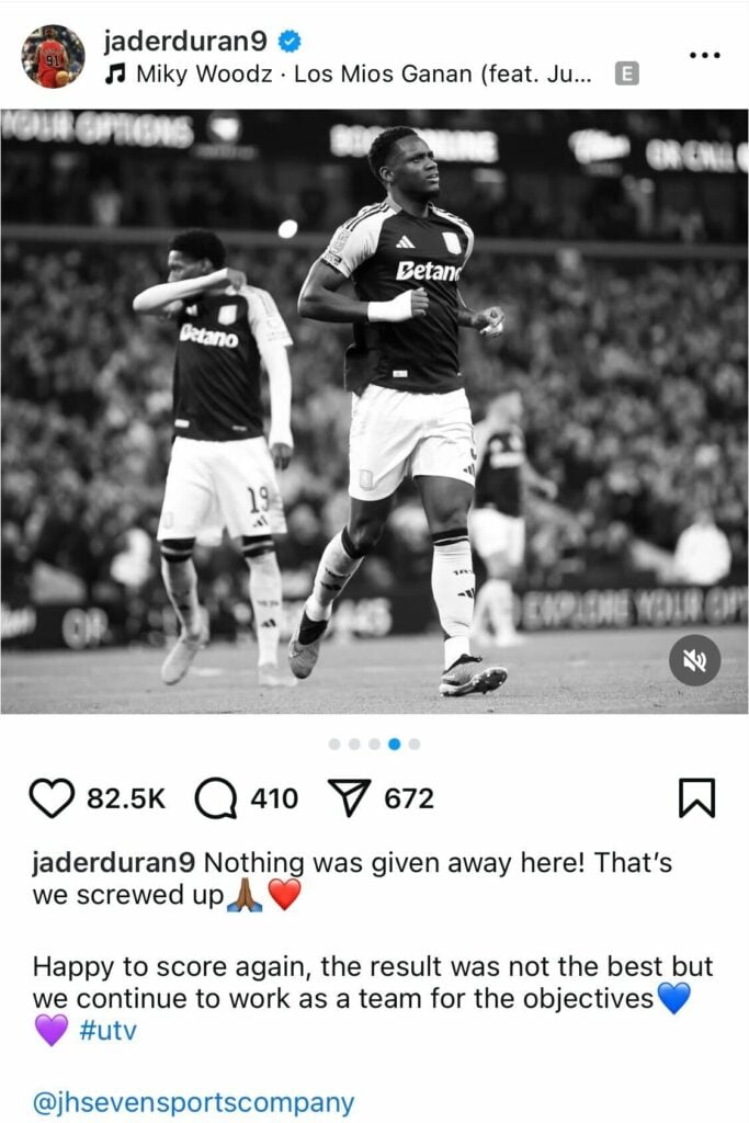 The Colombia international may have already won over the Villa Park faithful, but he took accountability with a recent Instagram post following their latest defeat.