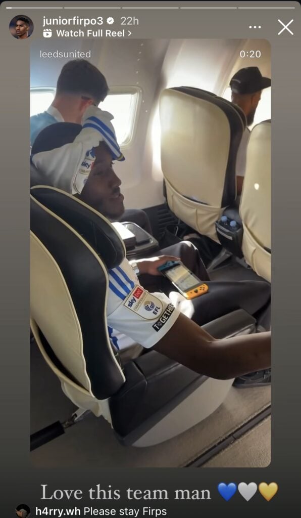 Firpo shared a message with fans during Leeds’ title parade, posting footage of the celebrations to his Instagram story along with the caption: “Love this team man”, showing a display of affection that may hint at his uncertain future with the club.