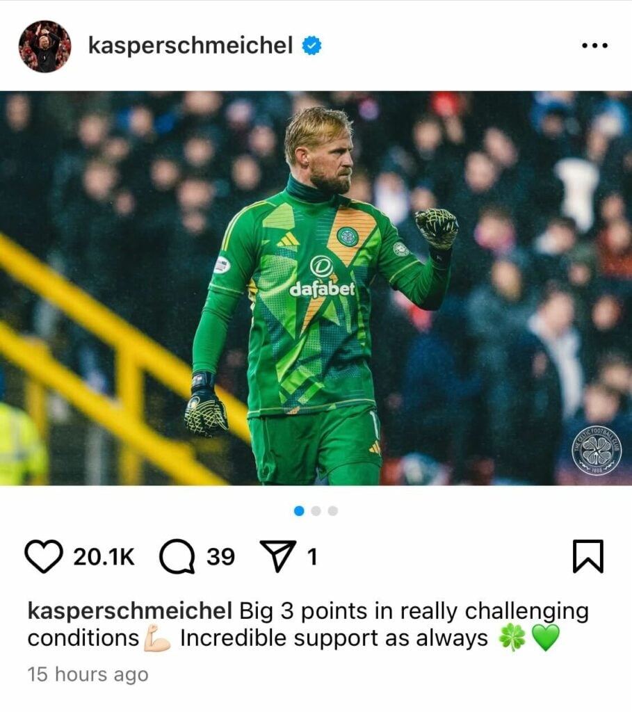 Schmeichel took to Instagram after the game, thanking the fans for their “incredible support” amid some “challenging conditions.”