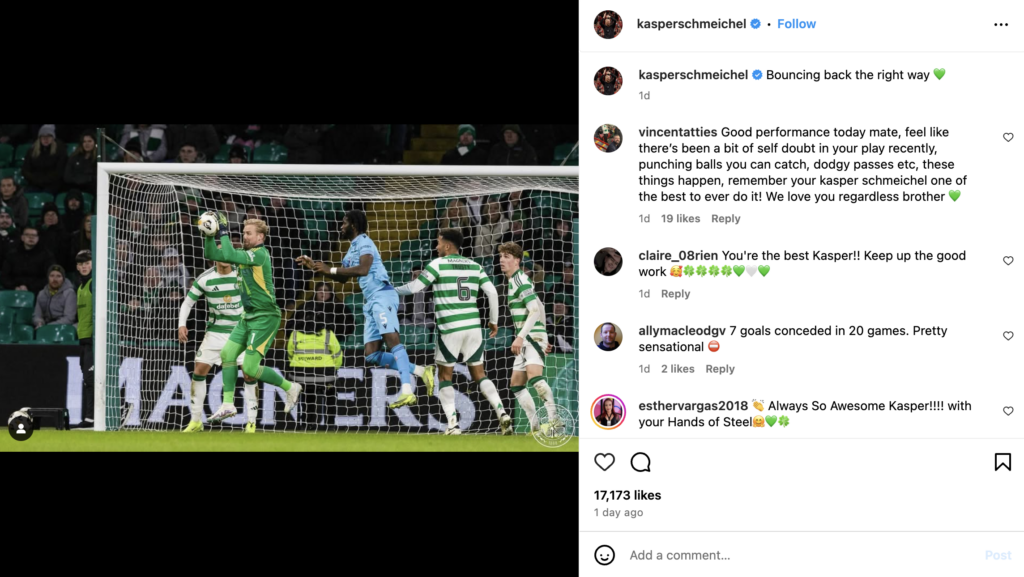 Schmeichel took to Instagram after the win over St.Mirren to celebrate taking another step towards the league title, saying: “Bouncing back the right way.”