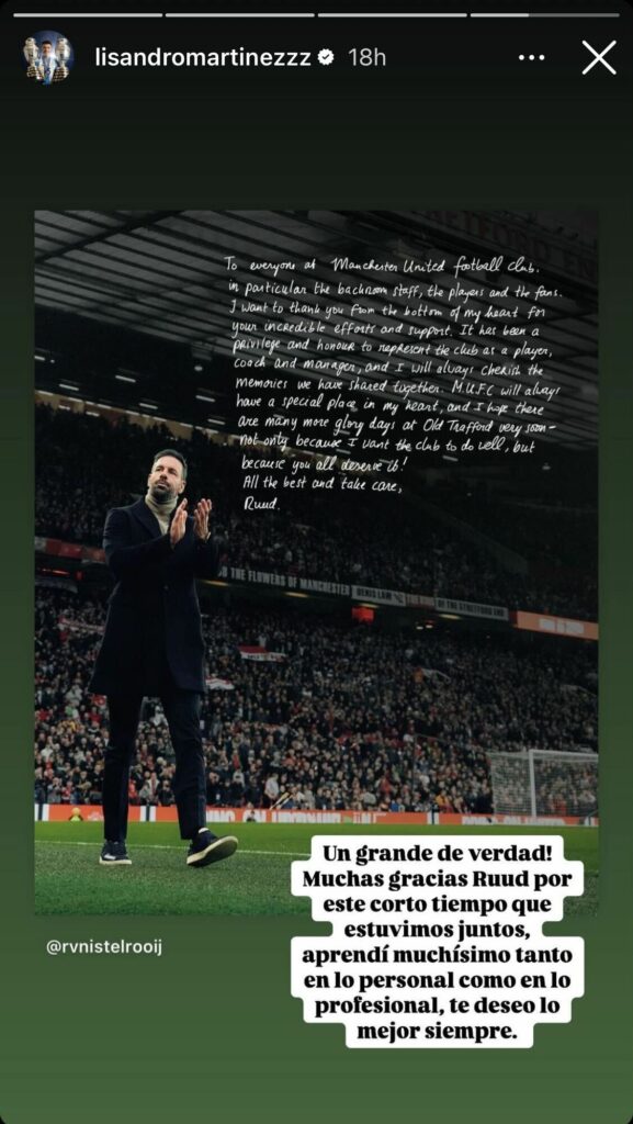 Lisandro Martinez has taken to social media to send an emotional message to Ruud van Nistelrooy after his recent Man United dismissal.