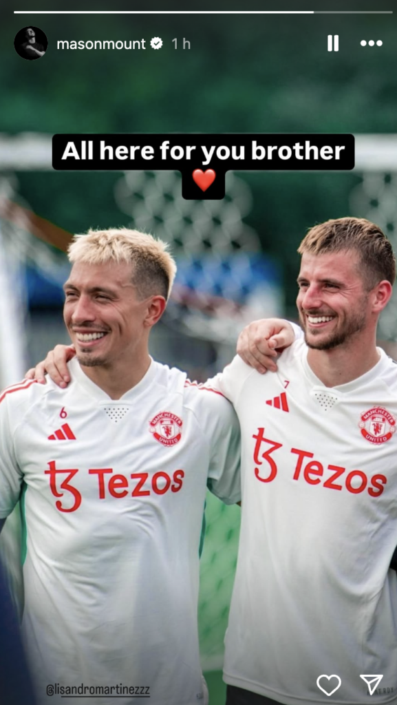 Mount took to Instagram to offer his support, posting a story with a picture of the two together and the message: “All here for you, brother”.