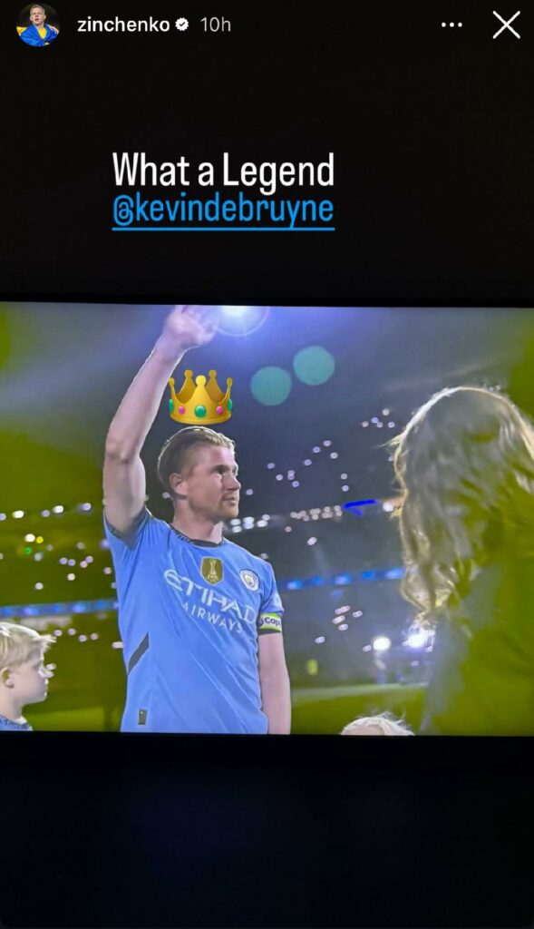However, the Ukrainian international took to social media to send a message to one of his former team-mates, as Kevin De Bruyne played his final Manchester City game at the Etihad.