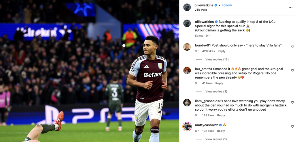 Watkins restored Villa’s lead before an unfortunate slip saw him miss a bizarre penalty. He later assisted Rogers’ third goal, sealing a memorable night for the club.