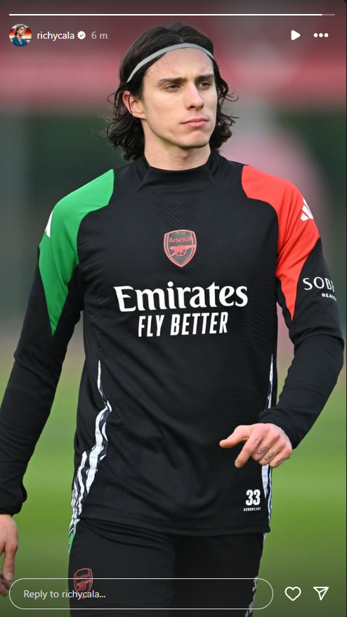 Arsenal defender Riccardo Calafiori has posted on social media to share a training ground image ahead of their Champions League clash with Dinamo Zagreb.