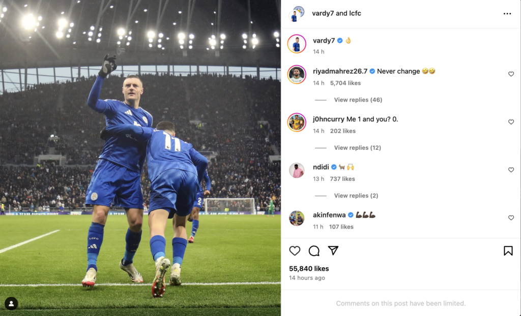 The winger took to Instagram to respond to Vardy’s most recent post celebrating the win over Tottenham, simply saying: “Never change.”