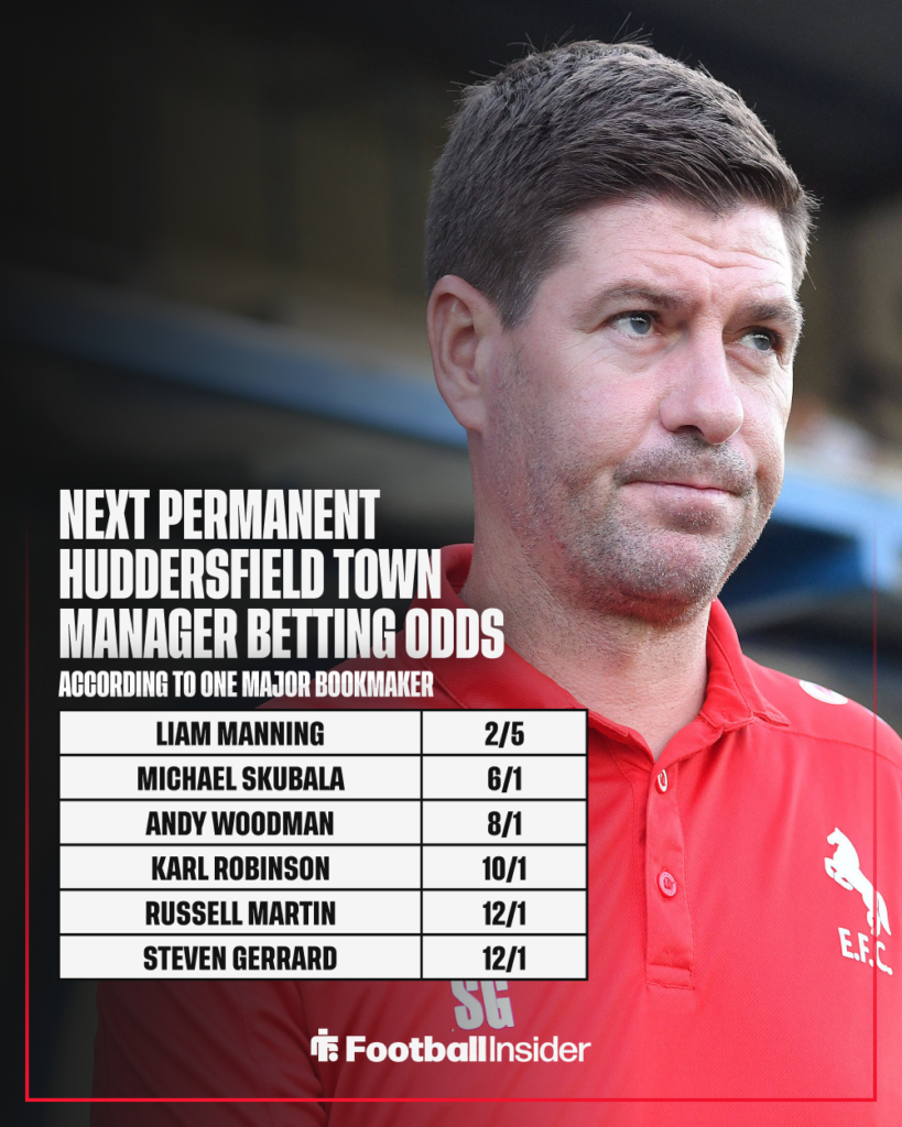 Gerrard has been handed 12/1 odds by one major bookmaker, along with Tony Mowbray, Leighton Baines and Russell Martin, while Liam Manning leads the race at 2/5.