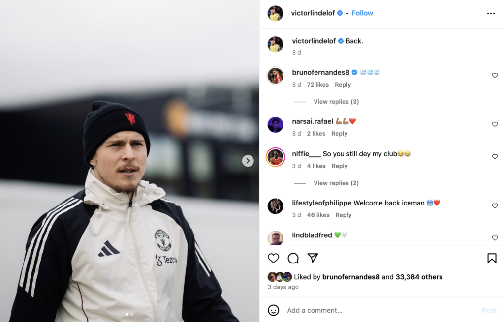 Man United defender Victor Lindelof took to social media to let the fans know he’s “back” from his most recent setback.
