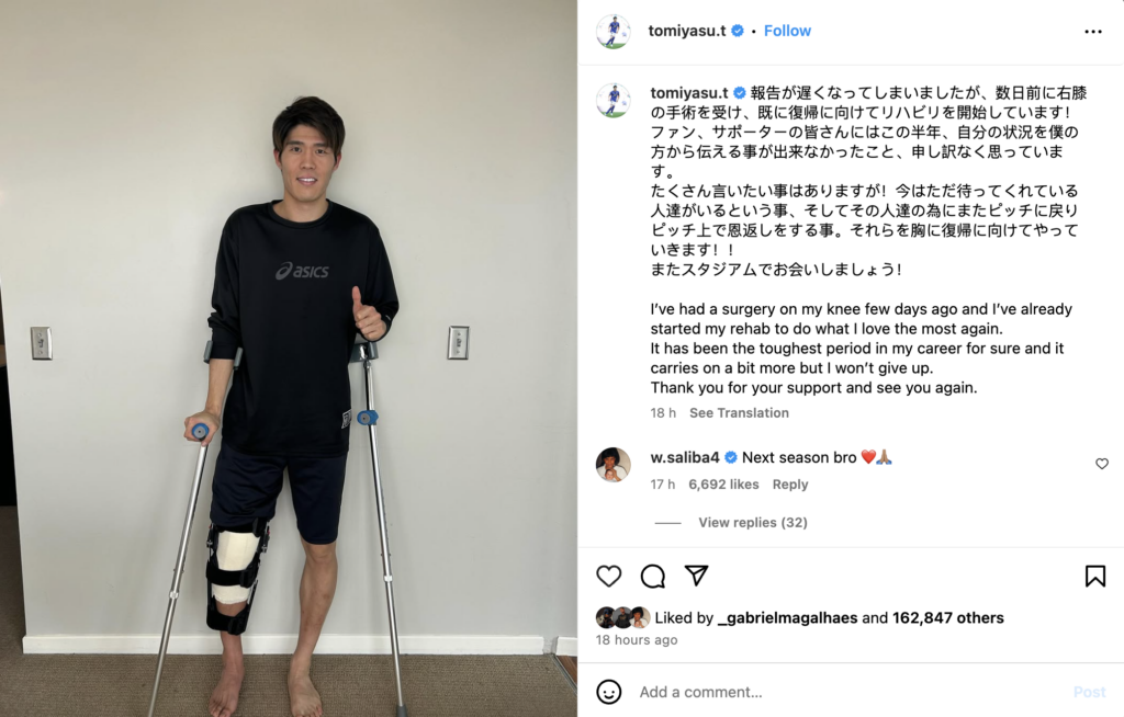Takehiro Tomiyasu, 26, has announced that he will be sidelined until 2025-26 after undergoing surgery on a knee injury that has seen him miss a vast majority of the first half of the campaign.