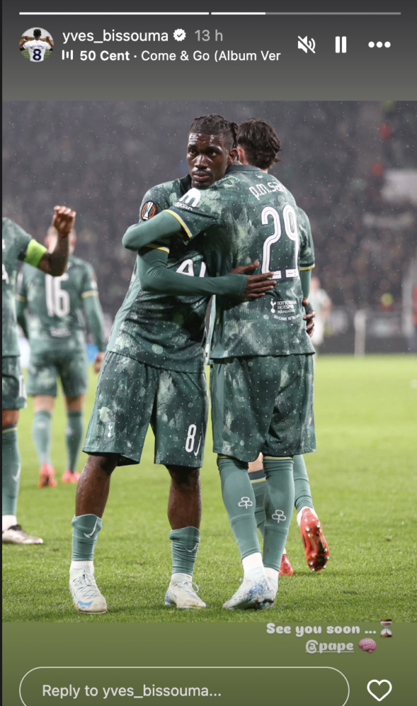 The midfielder shared a photo on Instagram alongside Pape Matar Sarr with the caption: “See you soon…” hinting at a potential midfield partnership in the upcoming Europa League clash.